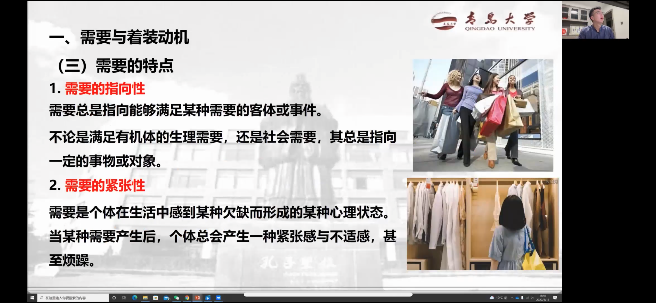 1)服装设计与工程系大多数理论课程均采用了多平台融合式教学模式,如《服装生产管理与智能制造》、《服装心理学》、《进出口服装商品检验》、《成衣工艺学》、《服饰时尚赏析》、《服装辅料及其应用》等课程,直播平台依托钉钉、腾讯会议,课程资源依托18禁 在线课程平台(超星泛雅)、中国大学MOOC及学堂在线,为学生提供了全方位的学习渠道。